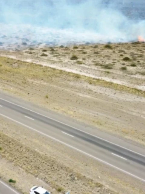 Un incendio de pastizales en la Ruta Nacional N°3, entre Trelew y Puerto Madryn, mantiene en alerta a los equipos de emergencia.