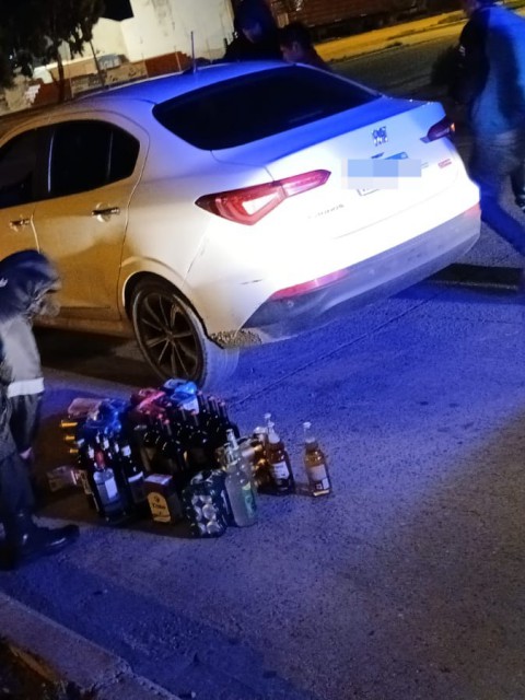 Durante la madrugada, la policía interceptó un vehículo con una importante cantidad de bebidas alcohólicas destinadas a la venta ilegal.