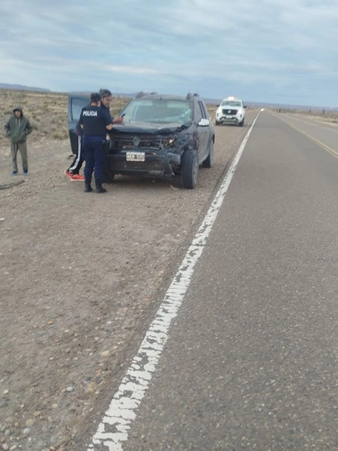 El siniestro involucró a un vehículo Renault Duster Luxe 2.0, que impactó contra un guanaco que se cruzó de manera imprevista sobre la calzada, una situación frecuente en rutas patagónicas, especialmente durante horarios nocturnos y de baja visibilidad.