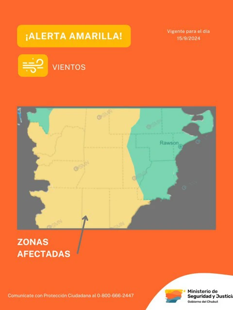 La Subsecretaría de Protección Ciudadana dependiente del Ministerio de Seguridad y Justicia informó sobre la actualización de la zona de cobertura del alerta amarilla por vientos, emitido por el Servicio Meteorológico Nacional.