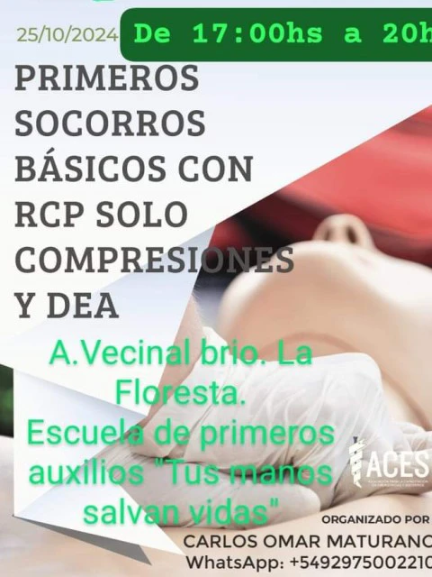 Este 25 de octubre, de 17:20 a 20 horas, se llevará a cabo una capacitación gratuita sobre primeros auxilios básicos y RCP en la vecinal del barrio La Floresta. La jornada estará a cargo de Carlos Omar Maturano, enfermero e instructor nacional de primeros auxilios, quien explicó que la capacitación busca brindar herramientas prácticas para actuar en situaciones de emergencia en el hogar, eventos o en la comunidad.