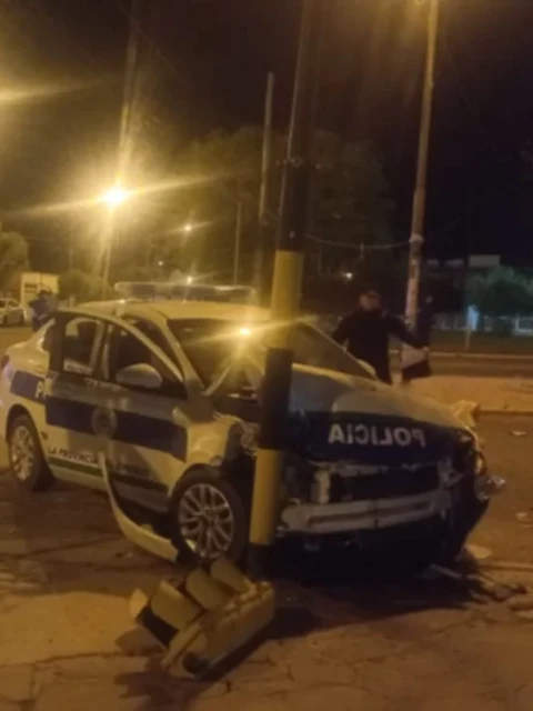 Un fuerte choque entre un patrullero de la Policía de Chubut y un taxi en el cruce de las calles 25 de Mayo y Castelli de Rawson se registró el pasado lunes a las 23:00 horas. Según testigos, el accidente ocurrió cuando uno de los vehículos cruzó la intersección en el cambio de luces del semáforo, generando un impacto que también involucró a un semáforo.Los cuatro efectivos policiales que viajaban en el patrullero, a pesar de sufrir lesiones leves, fueron trasladados al Hospital Santa Teresita de Rawson para recibir atención médica. Inicialmente, la policía se dirigía a intervenir en una situación reportada, donde se alertó sobre tres individuos con una escalera en un cajero automático. Sin embargo, el choque tuvo lugar antes de llegar al lugar de intervención, resultando en daños materiales y lesiones a los ocupantes del patrullero. Ambos conductores, el del patrullero y el del taxi, fueron sometidos al test de alcoholemia, arrojando resultados negativos para la presencia de alcohol en sangre.