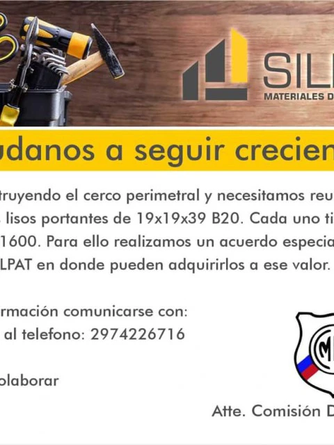 El presidente de la comisión, Gustavo Sosa, anunció que el Club Ciudadela necesita aproximadamente 2,000 bloques para un cerco perimetral.