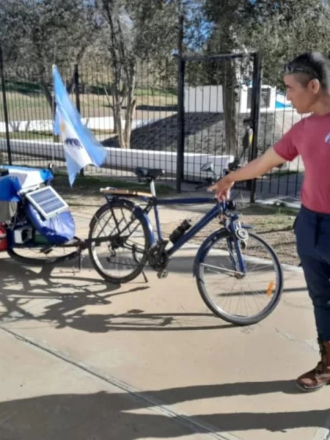 En bicicleta solar y con la bandera en alto: Víctor recorre el país en honor a Malvinas