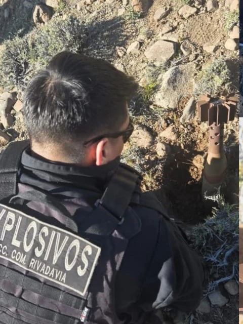 Personal de la División Explosivos de Comodoro Rivadavia intervino en el Campo "El Alejandro", a 16 kilómetros de Sarmiento, para asegurar el artefacto. El proyectil, encontrado sin espoleta, ya fue retirado de la zona rural