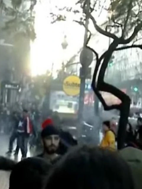 En este momento hay incidentes en el Consulado de Chile, prendieron fuego 13 contenedores ya hay 9 detenidos.