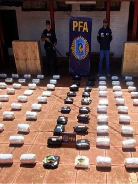 En un operativo realizado por agentes de la División Antidrogas Eldorado de la Policía Federal Argentina, se incautaron más de 128 kilogramos de marihuana ocultos en dos cajas de madera envueltas en nylon negro. La droga fue detectada gracias a la intervención del can detector "Laila", quien marcó positivamente las encomiendas durante una inspección de rutina en una empresa de transporte ubicada sobre la Avenida Hipólito Yrigoyen, en Eldorado, Misiones.