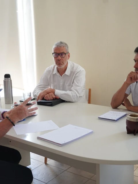 Sebastián Cardozo (presidente de la AAH) y Carlos Echeveste (miembro de la región patagónica de la Confederación Argentina de Hockey) visitaron al titular de Comodoro Deportes, Hernán Martínez, para juntos trazar lo que será el calendario 2026.
