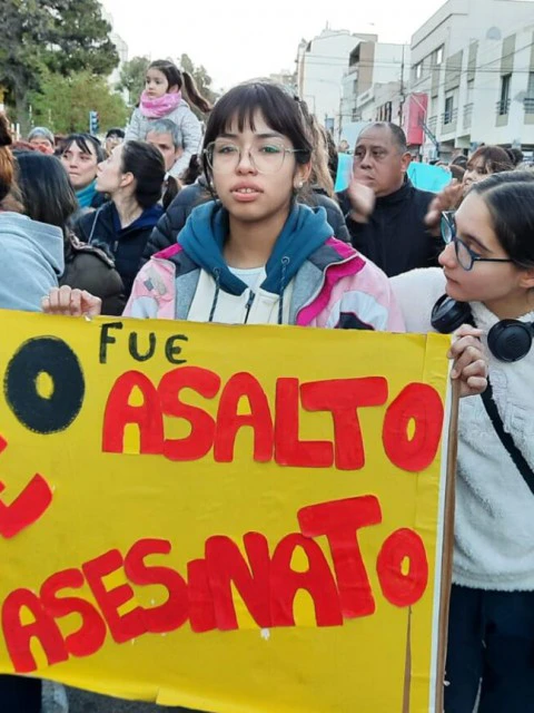 Luz, la novia de Gonzalo, se unió a la marcha en el centro de la ciudad para exigir justicia, enfrentando su dolor con valentía.