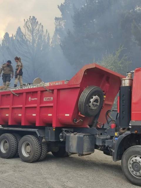Llegan camiones cisterna, máquinas viales y personal para ayudar a los bomberos en Epuyén