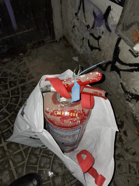 Lo sorprendieron orinando en la vía pública y descubrieron que se había robado el matafuego del supermercado