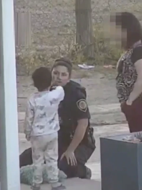 Afortunadamente, una mujer que pasaba por el lugar se percató de la situación y, con valentía, decidió llevar al pequeño hasta una garita de seguridad. Las cámaras de vigilancia captaron el momento en el que la vecina, visiblemente preocupada, explica a una agente policial cómo encontró al niño.