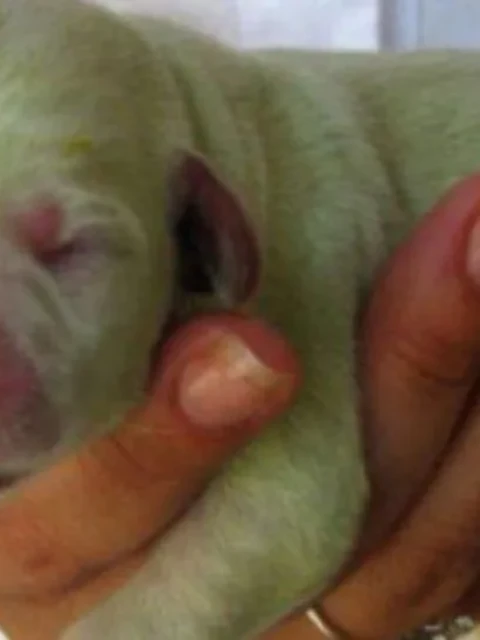 En Misiones hay furor por el nacimiento de un perrito de color verde. Según expertos, se da cuanto entran en contacto con biliverdina