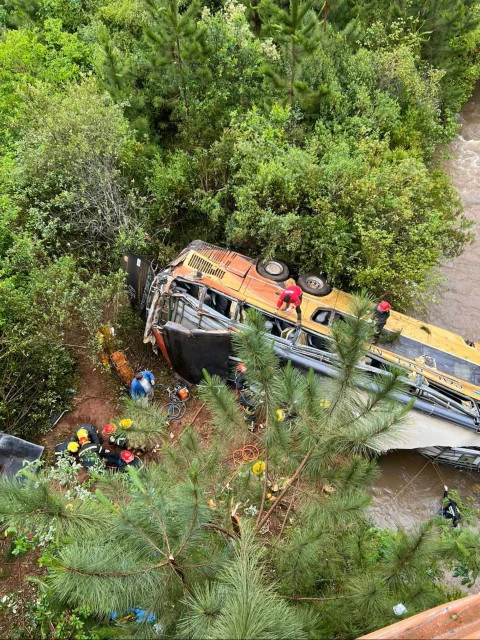 Tras el choque, el colectivo cayó de un puente hacia un arroyo. El vehículo quedó destrozado. En el lugar operan dotaciones de bomberos de Campo Viera y Oberá, efectivos de la Policía de Misiones, personal del Ministerio de Salud Pública y ambulancias provenientes de Oberá, Campo Viera, San Vicente y Panambí.