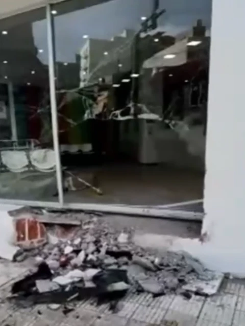 Un Ford Fiesta blanco perdió el control y chocó contra el frente de la firma Credil, causando importantes daños en los ventanales.