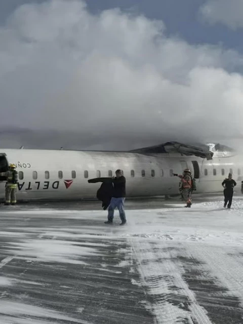 Un vuelo de la aerolínea Delta, procedente de Minnesota, protagonizó un dramático aterrizaje de emergencia en el Aeropuerto Pearson de Toronto, volcando sobre la pista en medio de una nevada