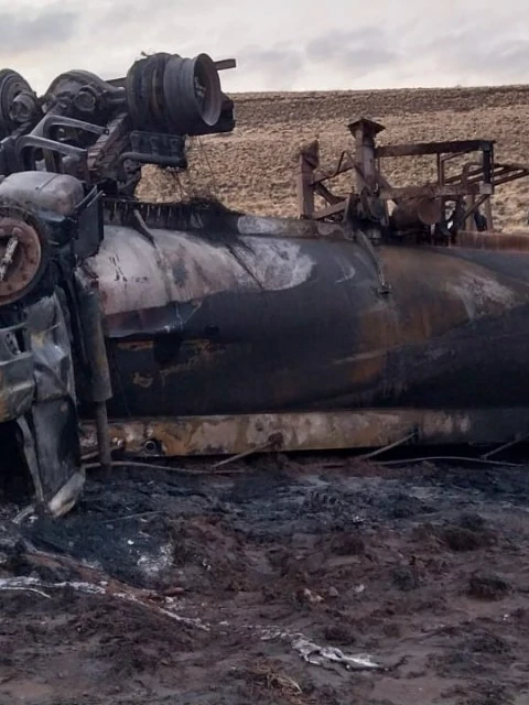 Este martes 8 de julio, alrededor de las 15:30 horas, un camión cisterna que transportaba petróleo sufrió un grave accidente en el sector del yacimiento Aguada Bandera, ubicado a 64 km de Las Heras.