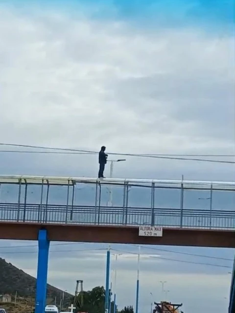 Según se informó, el sujeto se encuentra en el puente y manifiesta que su situación está vinculada a la falta de trabajo y alimento. "Está pidiendo trabajo y comida", indicaron.