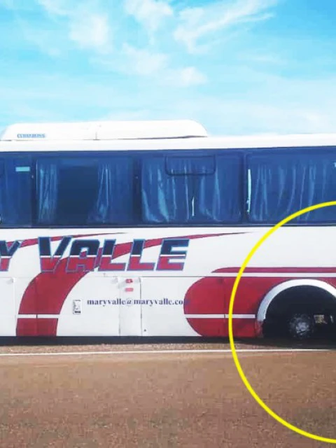 Un micro que iba a Puerto Pirámides perdió dos ruedas traseras, pero el chofer logró controlarlo