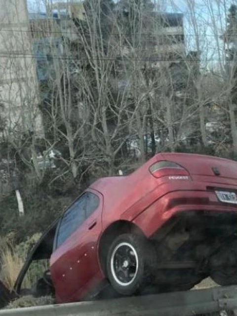 Hace instantes, en las calles de ingreso a la Universidad Nacional de la Patagonia San Juan Bosco, un peugeot bordó volcó pasando por encima la banquina y quedó incrustado en un pequeño canal de desagote.