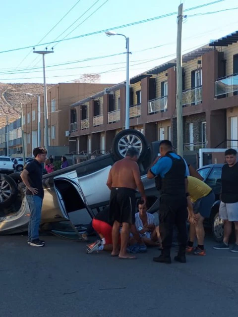 Un vuelco vehicular se registró este jueves alrededor de las 18:30 horas en la ciudad de Rada Tilly, sobre la avenida Sarmiento al 800, lo que motivó la intervención del personal policial de la comisaría local.